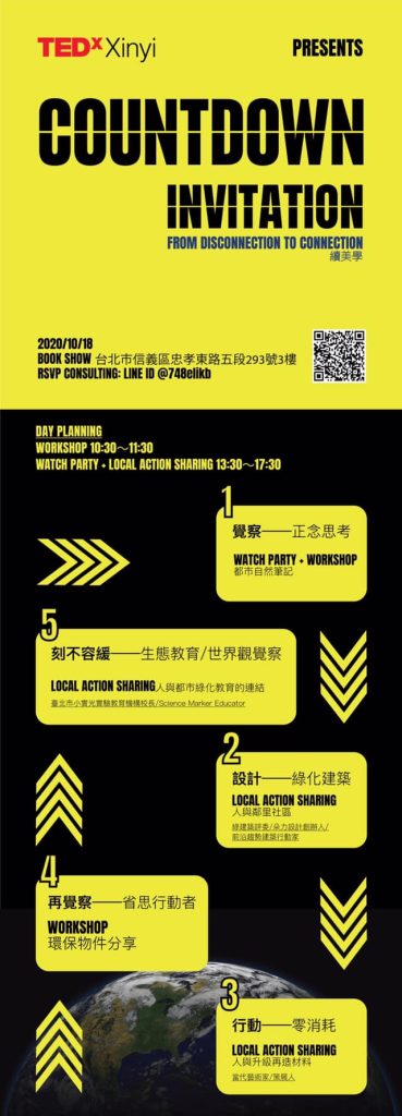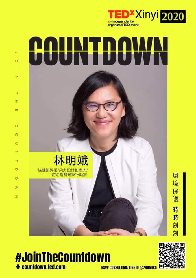 10/18(日)下午 TEDxXinyi將舉辦TED COUNTDOWN活動,林明娥建築師受邀參加本次活動主題分享,對於TEDxXinyi響應環保舉行本次活動,林明娥建築師將分享對於綠建築概念及經驗,透過建築設計與自然的連結,達到節能減碳效果,也讓人與自然更親近。 為推廣本次活動,林明娥建築師接受『藝點新聞』採訪,希望將TEDxXinyi COUNTDOWN環保綠化等議題向更多人推廣。