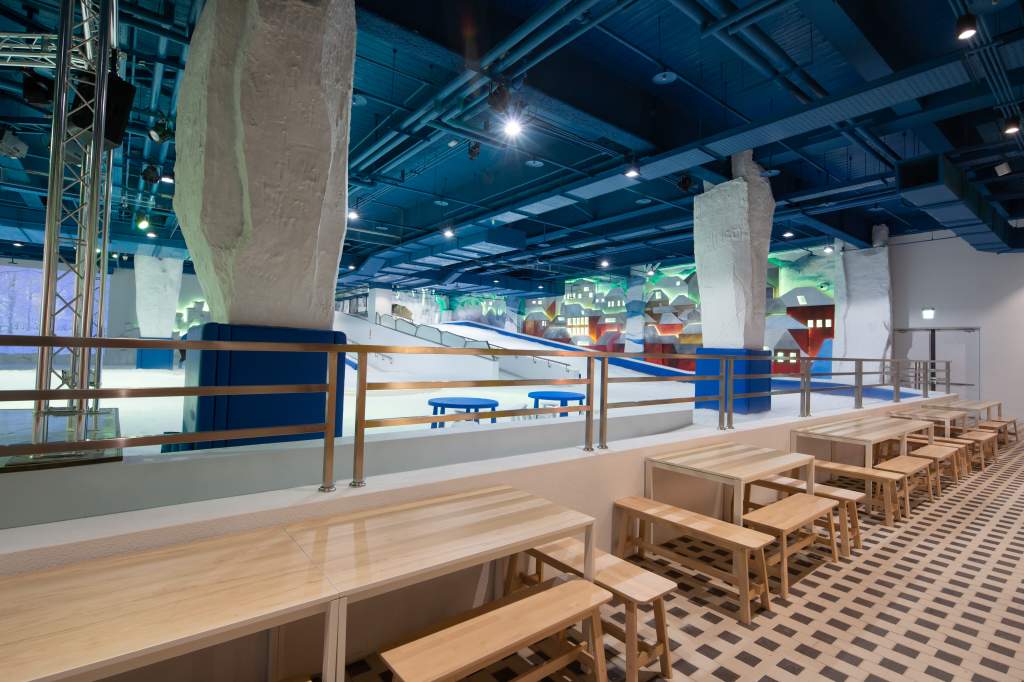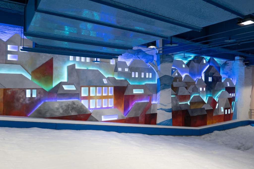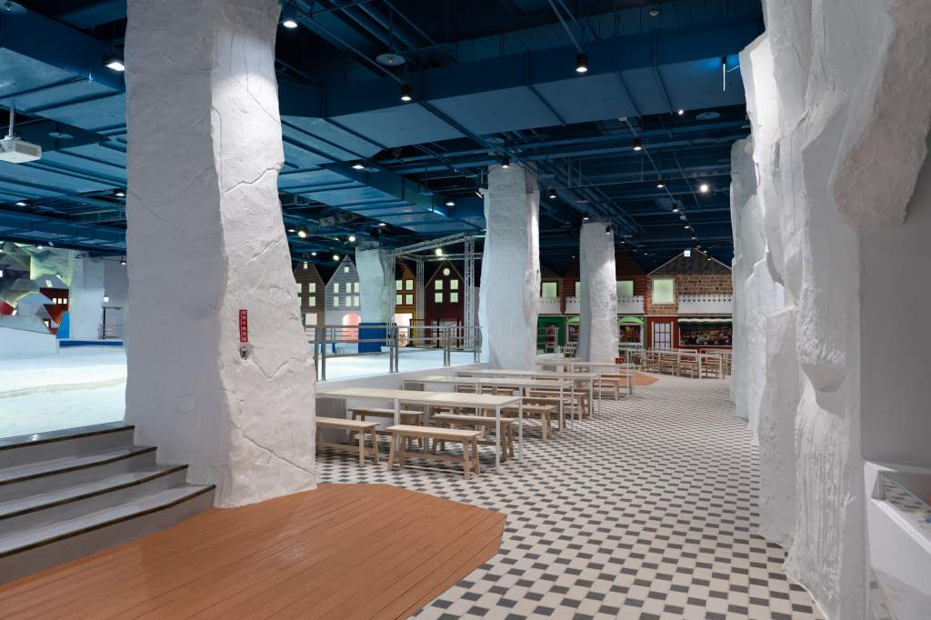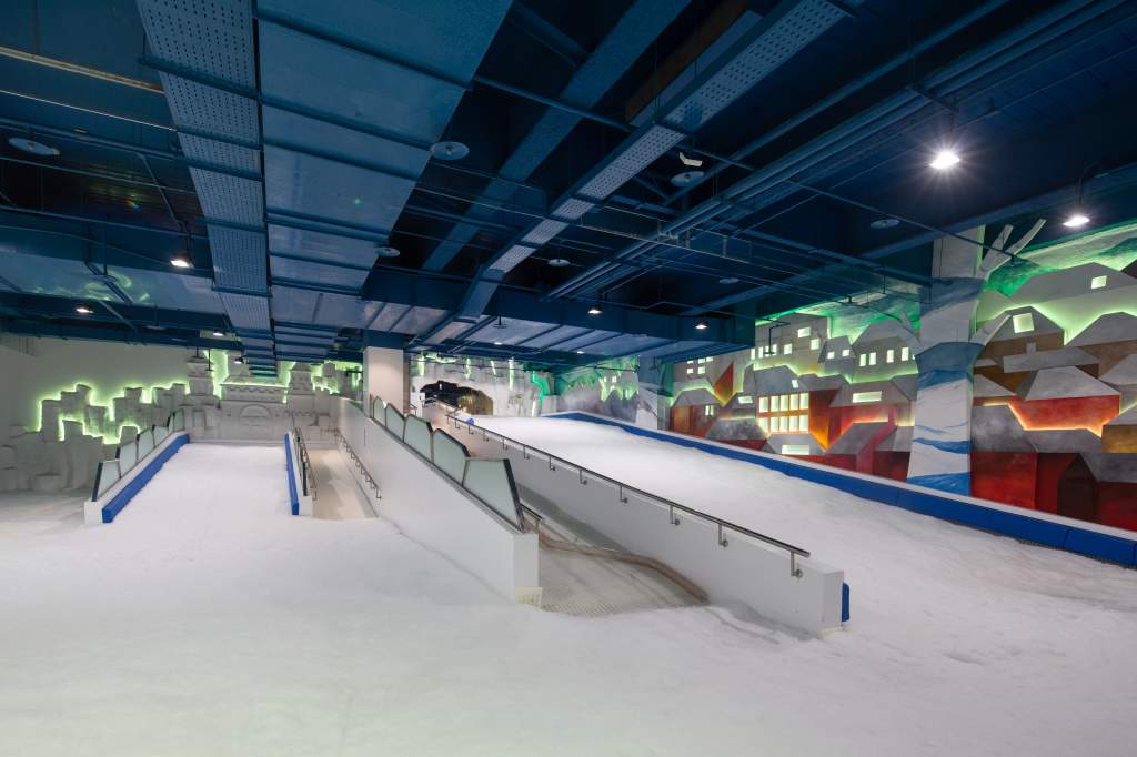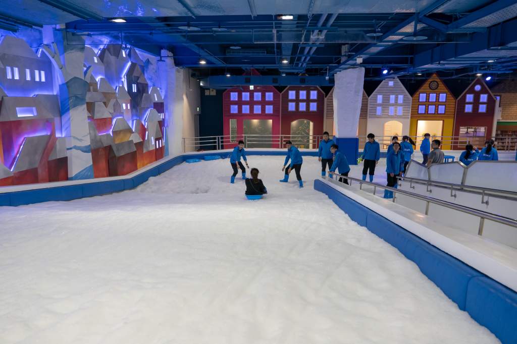 在換好鞋子之後,剛走出山洞就會看到冰雪小鎮,後續還有許多令人驚奇的事物,包括有一隻白熊像要往我們衝過來等。在換好滑具後就可以往山上方向滑雪,首先經過山洞到達滑雪坡道,在滑下山坡前,會先看到布呂根小鎮,就如同在北歐挪威滑雪感覺。在滑雪累了時,也可以去購買屬於滑雪場限定美食,若此時剛好碰到下雪時間,就能同時享用美食、燈光、音樂的聲光效果,讓每位遊客在這有歡樂美好的滑雪體驗。